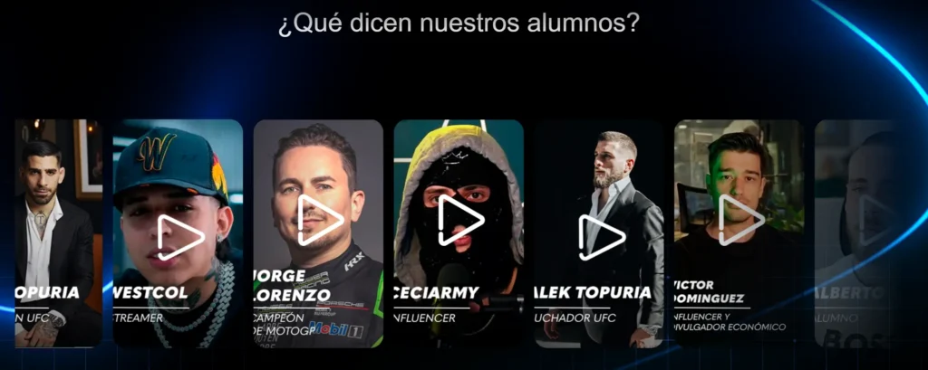 • Experiencias Reales de alumnos como tú y como yo a la vez que de Influencers y famosos.